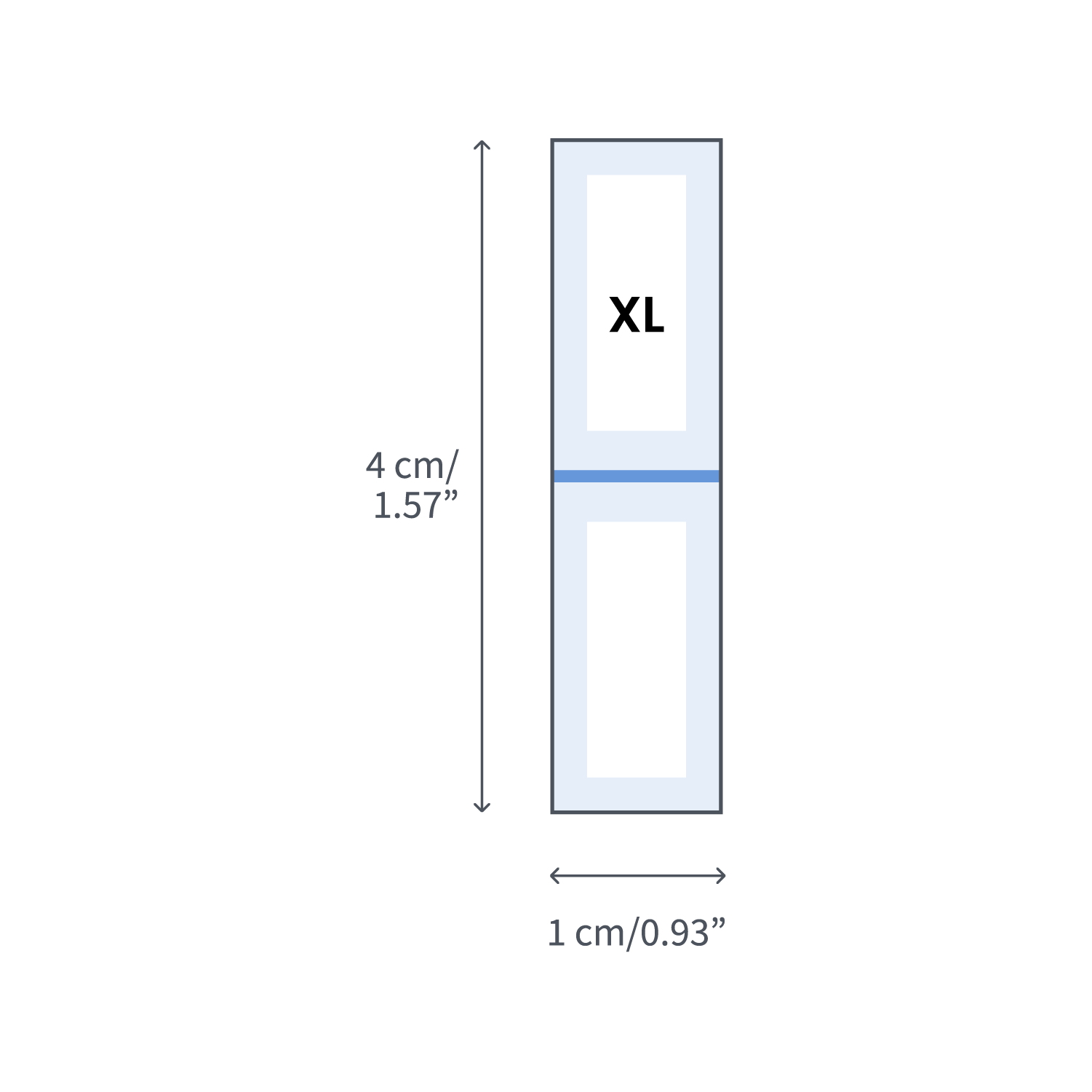 Onze geweven maatlabels zijn 1 x 4 cm groot.