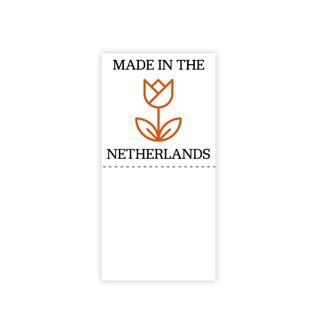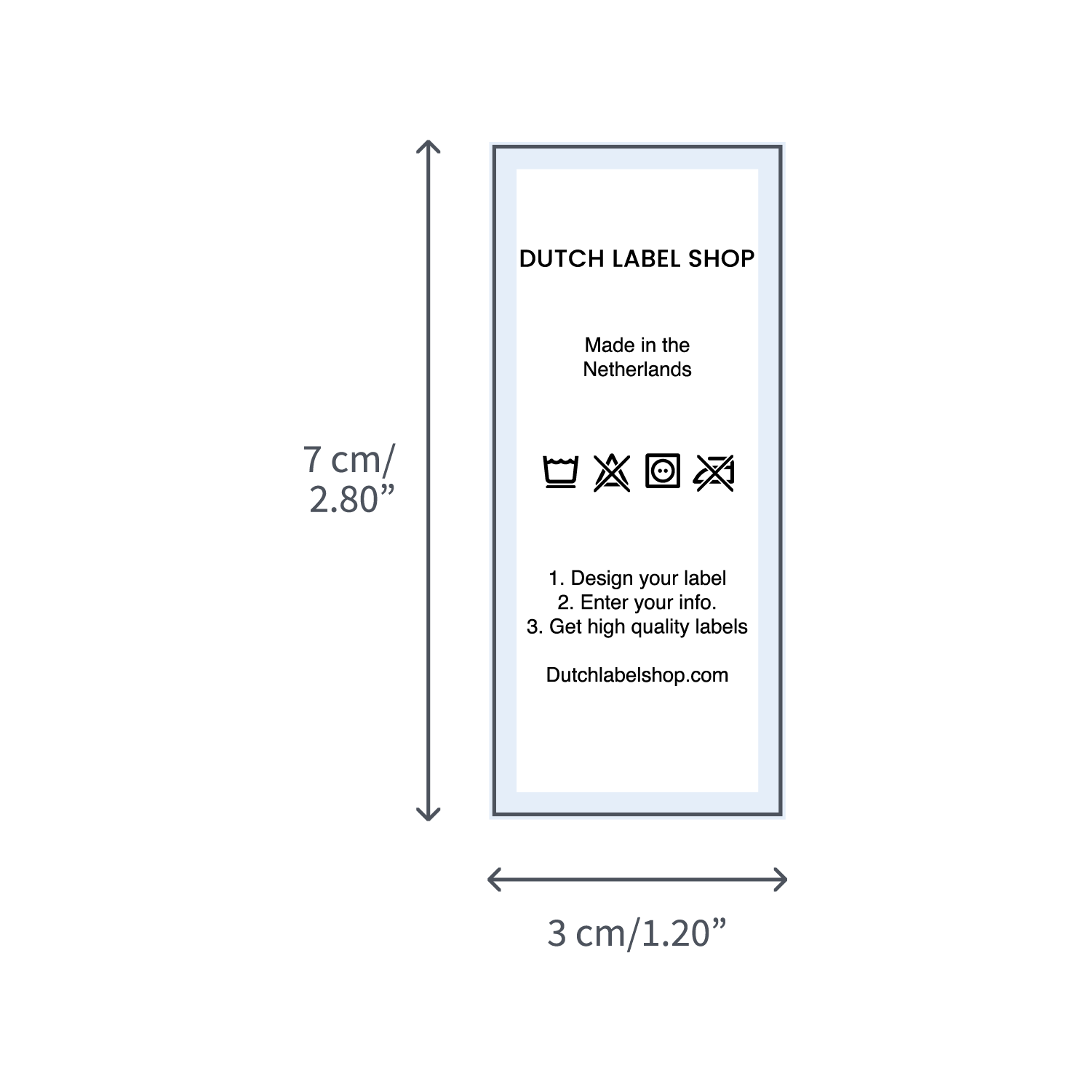 Onze geweven Made-In Labels zijn 3 x 7,2 cm groot.